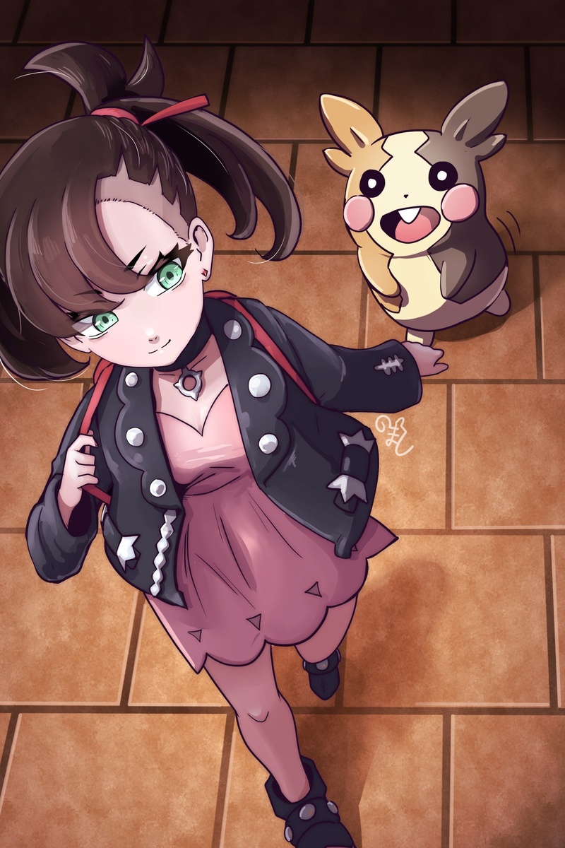 🎨 Художник: knockmart @PokePikaProject ✏️ Теги: #1girl #asymmetrical_bangs #backpack #bag #black_choker #black_hair #black_jacket #breasts #choker #closed_mouth #dress #earrings #full_body #green_eyes #highres #jacket #jewelry #knockmart #marnie_(pokemon) #morpeko #morpeko_(full) #open_clothes #open_jacket #pink_dress #pokemon #pokemon_(creature) #pokemon_swsh #red_ribbon #ribbon #small_breasts #stud_earrings #tile_floor #tiles #twintails #undercut #walking