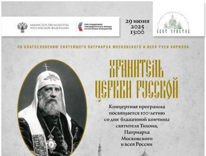 В воскресенье, 29 июня, в 13:00 в зале торжественных собраний Софийского собора (ул. Соколова, 1а) пройдут празднования в честь 100-летия со дня преставления святителя Тихона, патриарха Всероссийского, сопровождающиеся принесением мощей великого святого. В рамках торжеств жители и гости города получат возможность принять участие в концертной программе "Хранитель Церкви Русской". Литературно-музыкальную композицию представят сводный хор Самарской духовной семинарии под руководством профессора И.А.Пециной и Самарский губернский мужской хор "София" под руководством игумена Никона (Ратникова). Кроме того, в концертной программе примут участие струнная группа симфонического оркестра Тольяттинской филармонии под управлением главного дирижера И.А.Мокерова и артисты Самарской филармонии Александр Внуков и Сергей Коргулев. Организатором проведения принесения ковчега с мощами святителя Тихона по благословлению Святейшего Патриарха Кирилла выступает комиссия Русской Православной Церкви по развити