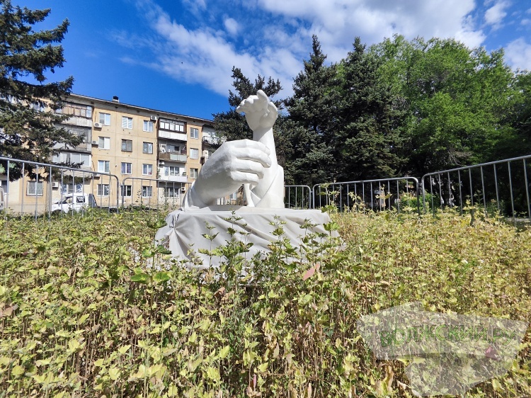 В Волжском забросили новый арт-объект, посвященный памяти знаменитых озеленителей города. Напомним, композицию из двух рук, закрывающих росток от солнца и ветра и принадлежащих якобы Зое и Вадиму Сапожниковым, открыли в январе текущего года ( подробнее... ). Скульптура стала очередным подарком городу, а автором выступил волжский скульптор Николай Карпов. Как узнал Волжский.ру, с тех пор здесь практически ничего не изменилось, хотя чиновники обещали обустроить вокруг клумбу. Но вот уже полгода памятник зачем-то огорожен турникетами и зарастает сорной травой. Власти не убрали даже защитную пленку, которая самостоятельно сползла.