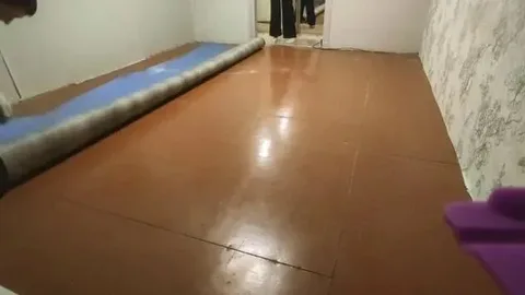 7. "Сухая" примерка: Разложите раскроенные куски линолеума на свои места с зазорами у стен. Подровняйте стыки (если есть). Зафиксируйте края у стен двусторонним скотчем или грузами, чтобы не сдвигалось.