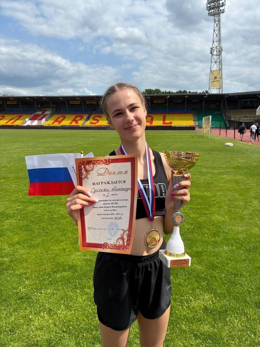 ✨ Наши новости! 11 июня воспитанники спортивной школы «Зубрёнок» приняли участие в соревнованиях по лёгкой атлетике, посвящённых памяти мастера спорта международного класса Б.В.Никулина. Состязания проходили в Туле. Александра Сулоева среди девушек 2010-2011 г.р. в беге на 100 м заняла 1 место, преодолев дистанцию за 12,48 с! Остальные ребята улучшили свои результаты. Лёгкой атлетикой «Зубрята» занимаются под руководством Елены Семичасновой. С 14 по 15 июня Александра Сулоева также приняла участие в первенстве Московской области по лёгкой атлетике. Саша заняла 3 место среди девушек и юношей до 16 лет в беге на 100 м с результатом 12,67 с. ⭐Разместить публикацию ⭐Поддержать голосом ✅ Мероприятия Серпухов https://dzen.ru/id/66f01c6eb4c6fe60c9ca1608 http://vk.com/serpukhov_events http://dzen.ru/serpukhov_events