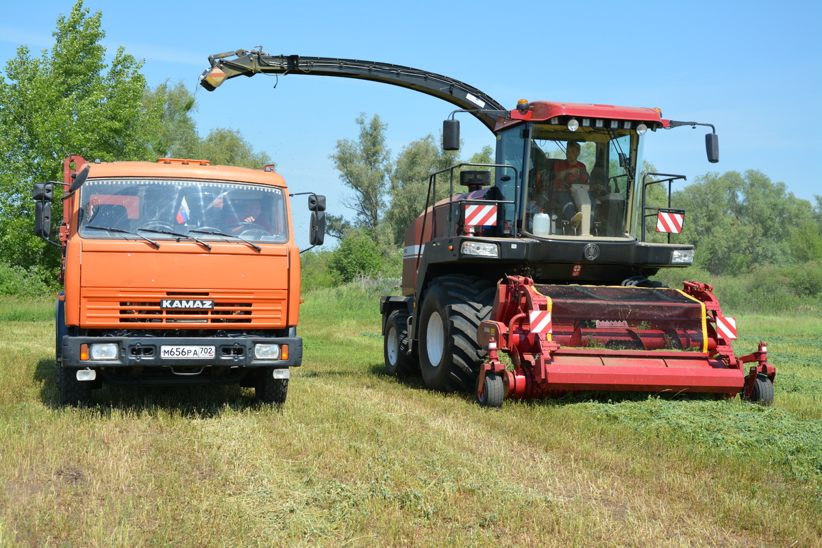 Сельскохозяйственные предприятия района активно начали кормозаготовку. Одними из первых на поля вышли работники СПК «Племзавод-Алга». В наш приезд на поле возле деревни Киреметево кипела работа. Шла уборка люцерны, которая является важным кормовым растением для животных. Процесс уборки проходит в несколько этапов. Сначала траву скашивают самоходной косилкой, что позволяет быстро подготовить её к дальнейшей обработке. После этого скошенная люцерна «дозревает» сутки, чтобы подсохнуть и стать более удобной для уборки. На этом поле работает новый комбайн GOMSELMASH FS80 PRO, который хозяйство приобрело недавно. Эта современная техника оснащена всем необходимым для эффективной и качественной уборки урожая. Комбайн отличается высокой производительностью и надёжностью, что позволяет механизатору справляться с задачами быстро и без лишних усилий. Доверили управление новой техникой опытному механизатору Вадиму Байдимирову. - Аналогичный комбайн уже более 10 лет служит нам верой и правдой, и он
