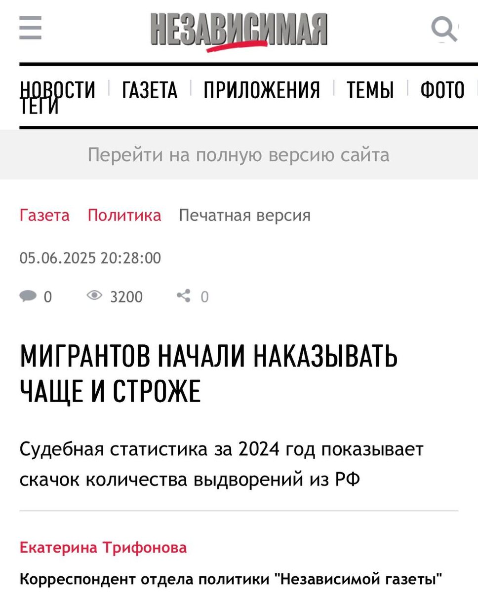 2024 год показал существенный рост привлечения к ответственности предпринимателей за нарушения в привлечении к труду мигрантов Самих работников стали выдворять из страны почти в два раза чаще На практике мы видим реально существенный рост как административных так и уголовных дел за незаконную миграцию (раньше статья вообще выглядела экзотически) «Независимая газета» опубликовала комментарий Управляющего партнера бюро Александра Немова #немовы_комментарийСМИ