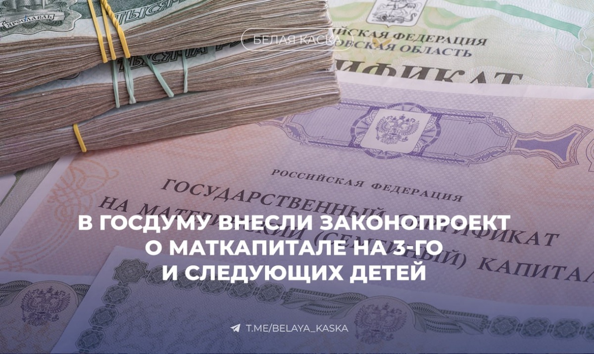 В Госдуму внесли проект о маткапитале на 3-го и следующих детей