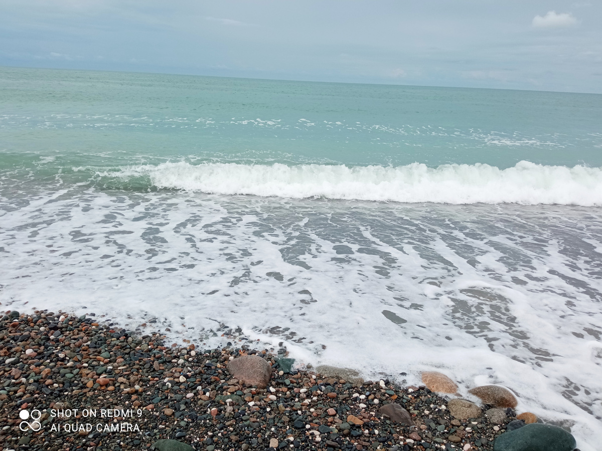 Дождь прекратился, небо стало светлое, солнышко выглянуло. И мы уже втроём пошли на море.