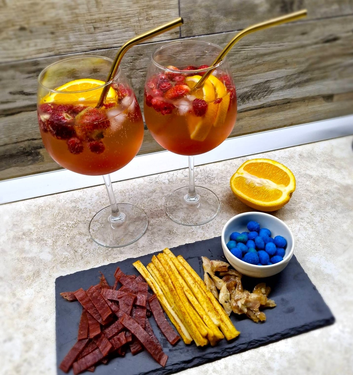 Этот коктейль - идеальное завершение рабочей недели. Ведь порой так хочется завершить пятничный вечер бокалом любимого вина. А если за окном +30, то желательно ещё и охлажденного. А если еще и заменить его на освежающую сангрию или коктейль с ягодами, фруктами и игристым, то вечер точно будет незабываемым! Точное название данного коктейля я уже и не припомню, составляющие я немного изменила и дополнила, чтобы он идеально соответствовал нашим вкусовым предпочтениям. Получилось просто волшебно! Яркий вкус фруктов и ягод с шампанским добавляют напитку игривости и праздничного настроения. Этот коктейль не только прекрасно освежает в жаркий день, но и радует глаз своим праздничным видом. Он станет настоящим украшением любого стола: от новогоднего вечера и девичника до романтического ужина - и произведет неизгладимое впечатление. Не нужно быть профессиональным барменом, достаточно просто смешать все ингредиенты в правильных пропорциях, добавить лед и украсить бокал свежими ягодами и фруктам
