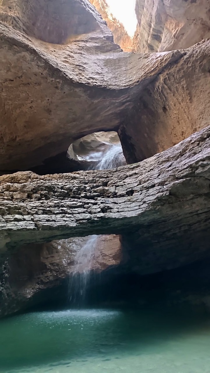 💦Салтинский водопад Дагестан Единственный подземный водопад в Дагестане, находится на окраине села Салта в Гунибском районе Дагестана Река Салтинка берёт начало на склонах Кудалинского каньона на высоте 1840 метров, течёт по Салтинской теснине и проваливается вниз через отверстие в сплошной скале с высоты 20 метров Глубина ущелья, ведущего к водопаду, местами достигает 150 метров, при этом его ширина составляет всего 2–5 метров #путешествияблондинки #дагестан
