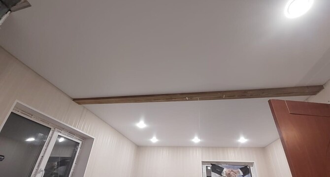 создаст больше грязи и мусора. Если же балки изначально выглядят отлично, то натяжные потолки можно натянуть просто между ними. Ответ: Установка двухуровневого натяжного потолка обычно заним