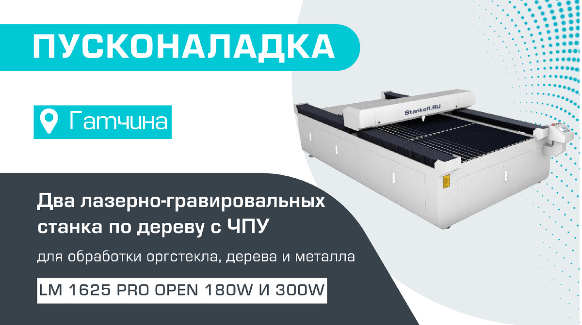 В июне 2025 года нашей компанией была проведена поставка и пусконаладка двух лазерно-гравировальных станков с ЧПУ для резки фанеры, пластика и других материалов: LM 1625 PRO OPEN 180W и LM 1625 PRO OPEN 300W в Гатчине. Данные лазерные станки широко применяется для производства рекламной, сувенирной, текстильной, обувной, мебельной и прочей продукции.