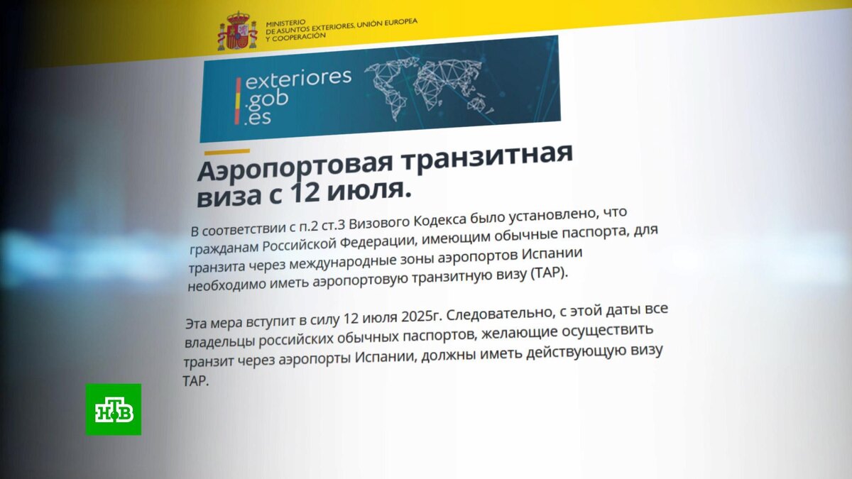 [ Смотреть видео на сайте НТВ ] С 12 июля 2025 года россиянам потребуется транзитная виза для пересадки в испанских аэропортах. До этого россияне могли пересаживаться с рейса на рейс без визы при условии, что они не покидали пределы международной транзитной зоны. В разгар летних отпусков пришла новость о том, что Испания усложняет условия транзита для российских туристов. Уже 12 июля им нужна будет транзитная виза для поездок через международные аэропорты Испании. Об этом сообщило испанское консульство в Москве. С чем связано ужесточение, не поясняется. Транзитная виза будет действовать 24 часа, получить ее можно будет в испанских консульствах. При этом она не понадобится тем, у кого есть шенген или вид на жительство в странах Евросоюза. Сейчас россияне пока что могут пересаживаться с рейса на рейс в Испании без визы при условии, что они не покидают международную транзитную зону. По новым правилам, как поясняет Telegram-канал «Пора путешествовать! Trip Fare Area», визу придется получит