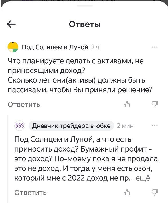Но давайте посмотрим под другим углом. Я данный актив начала покупать с мая 2022 года и закончила в 2023 году. Не то, что он мне разонравится, просто моя ситуация изменилась. Сейчас брокер показывает мне бумажный доход +170%. Если я начну продавать в июне, но смогу воспользоваться льготой долгосрочного владения только по нескольким лотам. При продаже остальных мне придется заплатить НДФЛ с разницы между ценой покупки и продажи. И получается, что да, актив не приносит доход целый год, но продать его сейчас - это принести себе убыток примерно 15к.