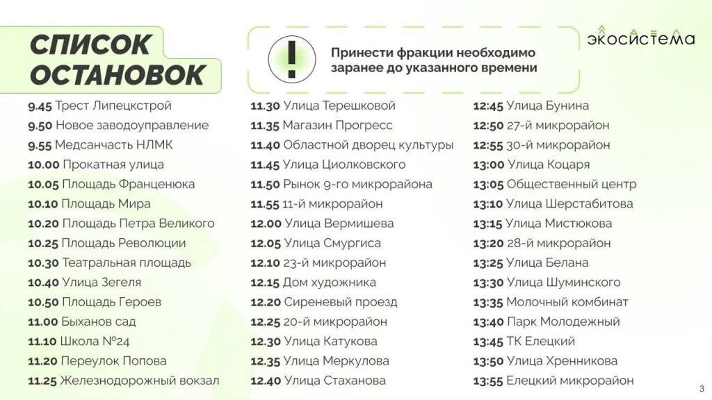 «Зелёный автобус» снова проедет по улицам Липецка 22 июня, чтобы помочь горожанам избавиться от ненужных вещей и отправить их на переработку. С 9:45 до 14:00 он сделает целых 45 остановок.