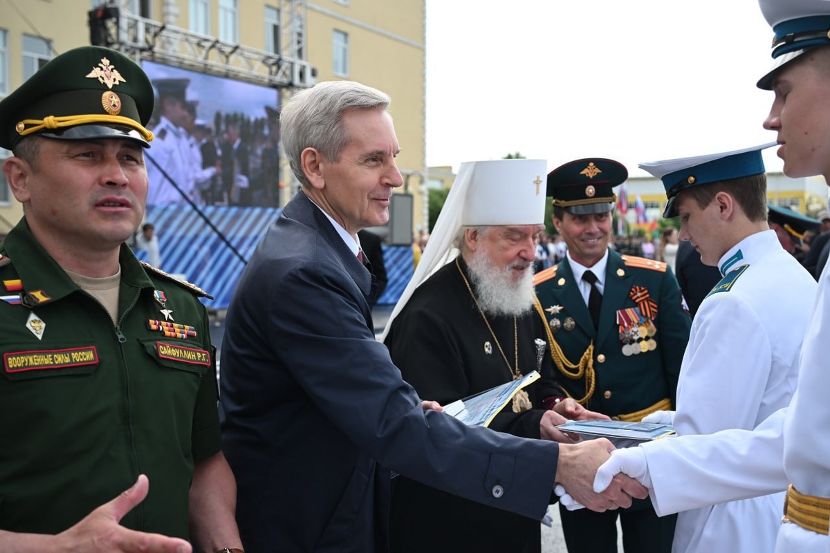 ⚡️📝📝📝Руководитель фракции «Единая Россия» областной думы Андрей Артюхов принял участие в церемонии вручения аттестатов выпускникам ТПКУ. Вместе с Героем России Рустамом Сайфуллиным, митрополитом Тобольским и Тюменским Димитрием он поздравил ребят с окончанием учебы, пожелал успешно поступить в вузы и стать лучшими в выбранной профессии. 💬 «Ребята доказали, что способны преодолевать трудности, ставить высокие цели и добиваться их. Кадетское училище дало им не просто знания — оно воспитало характер, чувство долга и готовность служить Отечеству. В этом большая заслуга педагогов и наставников. Благодаря их профессионализму, терпению и душевной теплоте воспитанники смогли раскрыть свои таланты и подготовиться к следующему жизненному этапу. Сегодня перед выпускниками открываются новые горизонты. Кто-то выберет военную стезю, кто-то — гражданские специальности, но не сомневаюсь, что все они станут достойными представителями Тюменской земли, людьми чести, слова и дела», — отметил Андре