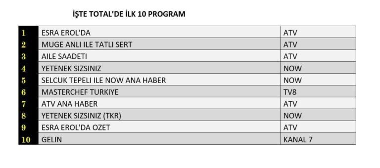 3. Повтор «Aile Saadeti» на atv — семейные ценности по-прежнему в тренде. А вот и любопытный нюанс: почему рейтинги повторов так высоки? Может, зрители пересматривают любимые моменты или просто пропустили первый показ? 📊 Здесь царило настоящее разнообразие: