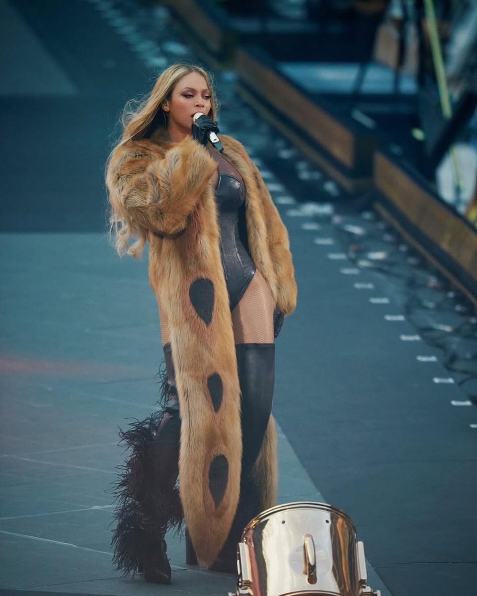 Cowboy Carter Tour Бейонсе в самом разгаре. Вчера певица дала последний из шести концертов в Лондоне, на очереди — Париж, Хьюстон и Вашингтон. Рассматриваем образы артистки, которые сами по себе — не последняя причина посетить шоу. Корсетное кожаное боди, длинная дубленка с интарсией и высокие ботфорты с перьями — дело рук Ferragamo; нуарный кружевной костюм и шляпа с фатой — Dolce & Gabbana. Светлое боди, украшенное кристаллами, поясом из страз и перьями создало ателье Self-Portrait; они же сшили несколько костюмов для танцевального коллектива Бейонсе. За погружение в ковбойскую эстетику отвечали Dsquared2 с их экстравагантным топом из ремней, а самым трогательным выходом стало появление певицы в образе Stella McCartney — в нем она исполнила песню Пола Маккартни Blackbird. Эволюцию концертных образов Бейонсе мы разбирали здесь.
