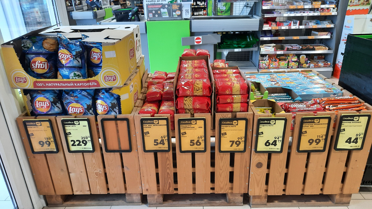 Всех приветствую, мои дорогие друзья и подписчики. В Пятёрочке началась новая неделя скидок с 17 июня. Покажу вам витрину с товарами со скидкой и товары у кассы. Магазин находится по адресу Ростовская область, Зерноградский район, станица Мечётинская, улица Ленина, 122 Чипсы картофельные Лейс сметана и зелень 225 г цена со скидкой по карте 229.99 рублей. Чипсы из натурального картофеля Лейс со вкусом запечённый каламбур с грушей 105 г цена со скидкой по карте 99.99 рублей. Изделия макаронные Шебекинские гр А улитки 450 г цена со скидкой по карте 54.99 рублей. Макароны Шебекинские рожок полубублик 450 г цена со скидкой по карте 56.99 рублей. Конфета Nuts 66 г цена со скидкой по карте 64.99 руб. Конфета Nuts 47 г с фундуком и тёртой фисташкой цена со скидкой по карте 79.99 рублей. Шоколад Goodmix молочный с хрустящей вафлей 40 г цена со скидкой по карте 44.99 рублей. Пирожное бисквитное Медвежонок Барни в ассортименте 150 г цена со скидкой по карте 99.99 рублей. Цен