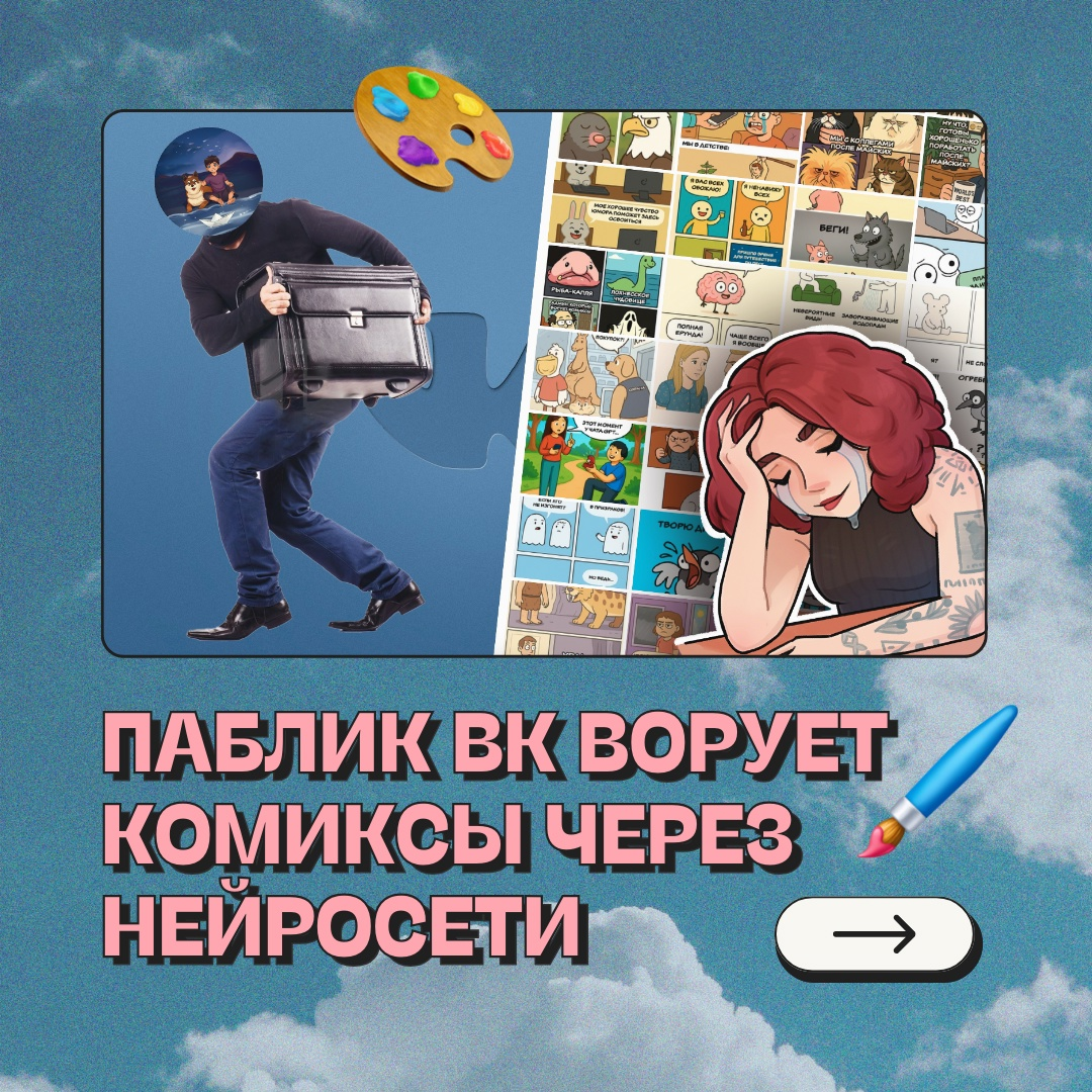 Как это работает? Они загружают в нейросеть уже готовый комикс, просят его «немного перерисовать, но сохранить суть» и получают переформулированную копию. Такой визуал уже не считается копипастой и не нарушает автоматические фильтры ВК. При этом идея, структура, настроение и даже стиль — копируют оригинал. А значит, крадётся именно творческий труд.