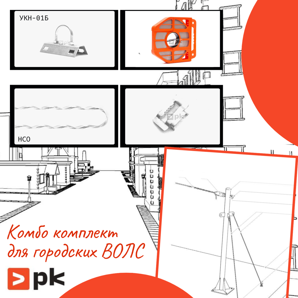 В современном мире, где связь становится неотъемлемой частью нашей жизни, создание надежных волоконно-оптических линий связи (ВОЛС) играет ключевую роль. Компания “Пикей” предлагает эффективное решение для крепления кабеля на опорах воздушных линий, что идеально подходит для городских условий и гарантирует долговечность и надежность. Крепление кабеля — это основа стабильной и безопасной работы всей телекоммуникационной системы. Неправильное или ненадежное крепление может привести к повреждению кабеля, что, в свою очередь, вызовет сбои в связи и дополнительные затраты на ремонт. Поэтому важно использовать качественные и проверенные решения. Мы подготовили для вас набор компонентов, который обеспечит надежное крепление кабеля на опорах с возможностью свода в кабельную канализацию. Вот что вам понадобится: 1. Узел крепления УКН-01Б — это основа, на которую можно положиться. Он обеспечивает надежное крепление и подходит для работы с различными типами кабелей. 2. Крюк-кольцо М14 — для удобн