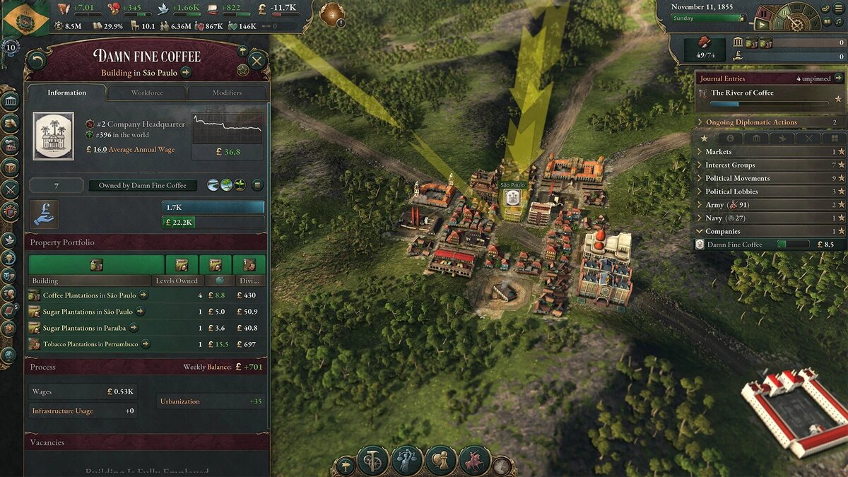 Дополнение вводит возможность создавать монополии — как государственные, так и частные. Государственные монополии эффективны, но требуют значительных затрат, тогда как частные могут вытеснять конкурентов, но сложнее контролируются. Монополии позволяют доминировать в производстве ключевых товаров, таких как сталь или текстиль, но их создание может спровоцировать недовольство других стран или внутренних групп населения, что требует балансировки между прибылью и стабильностью.