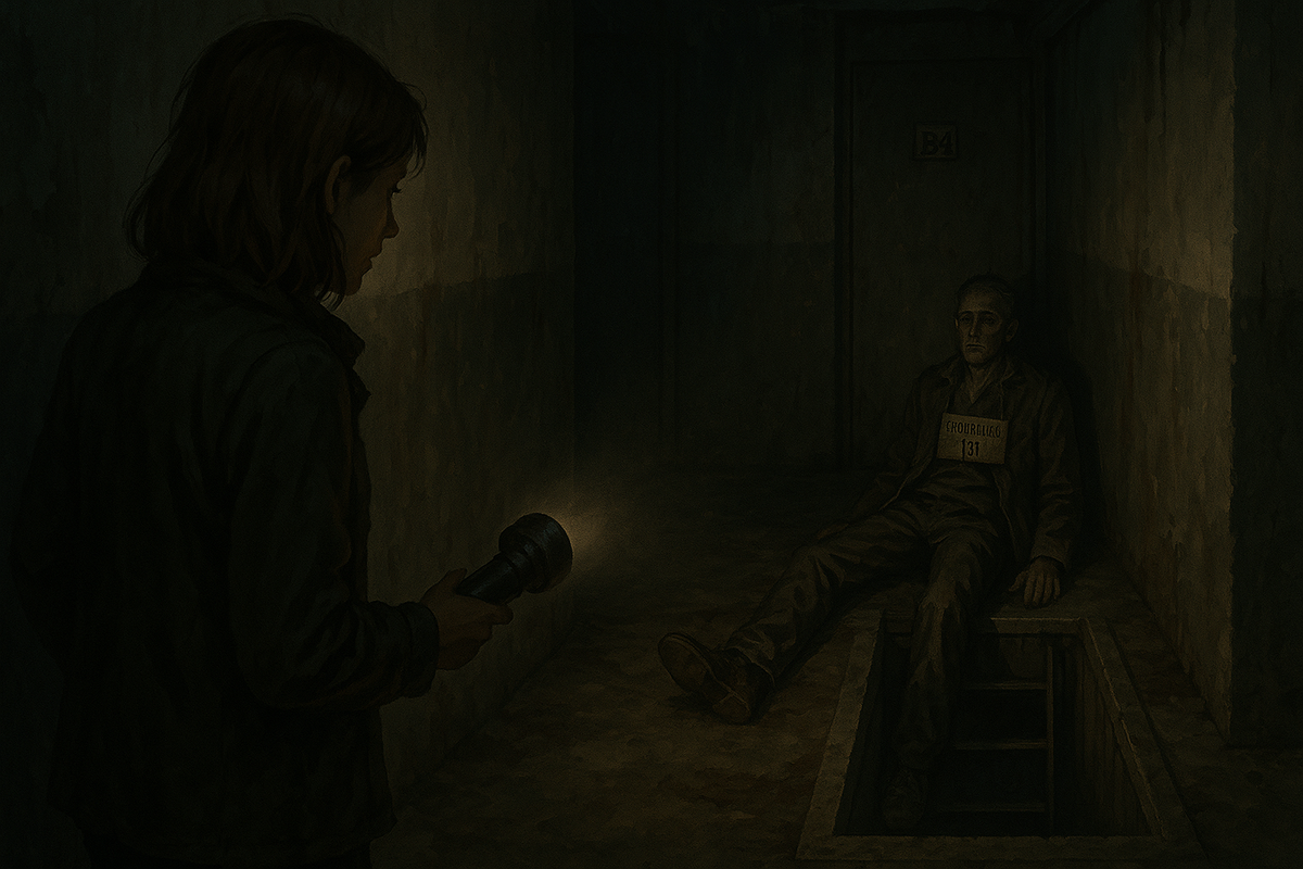 За ней оказался коридор — узкий, с низким потолком. Под ногами бетон, местами покрытый пятнами. Лиза огляделась: на стенах висели номерки — "B1", "B2", "B3"… Как в старых общежитиях или больницах.