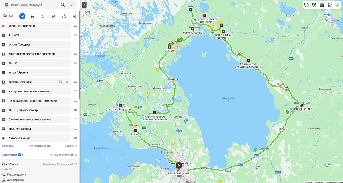 озере Сариярви - много места вдоль берега, но по выходным всё больше становится отдыхающих. Озеро чистое, стоянка большая. Восточный берег Ладоги, дорога вдоль него довольно спокойная. Катить одно удовольствие там где меньше машин, и это одно из таких мест. Рекомендую для поездки!