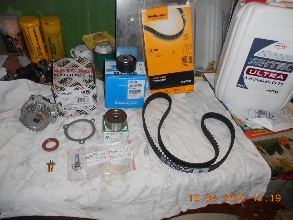 Всем привет. При замене герметика клапанной крышки обнаружил люфт натяжного ролика грм и помпы. Благо запчасти были куплены заранее. Приступаем в ремонту.