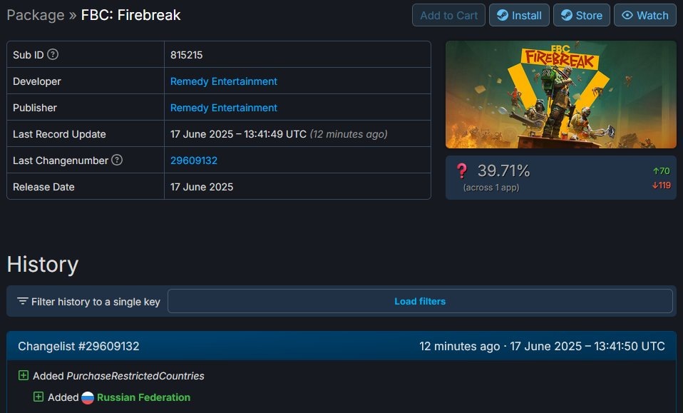 На протяжении нескольких недель игроки из России могли купить кооперативный шутер FBC: Firebreak в Steam за 1999 рублей, но на релизе столкнулись с невозможностью зайти в сетевые матчи. А через пару часов после релиза у игроков и вовсе пропала возможность приобрести игру.
