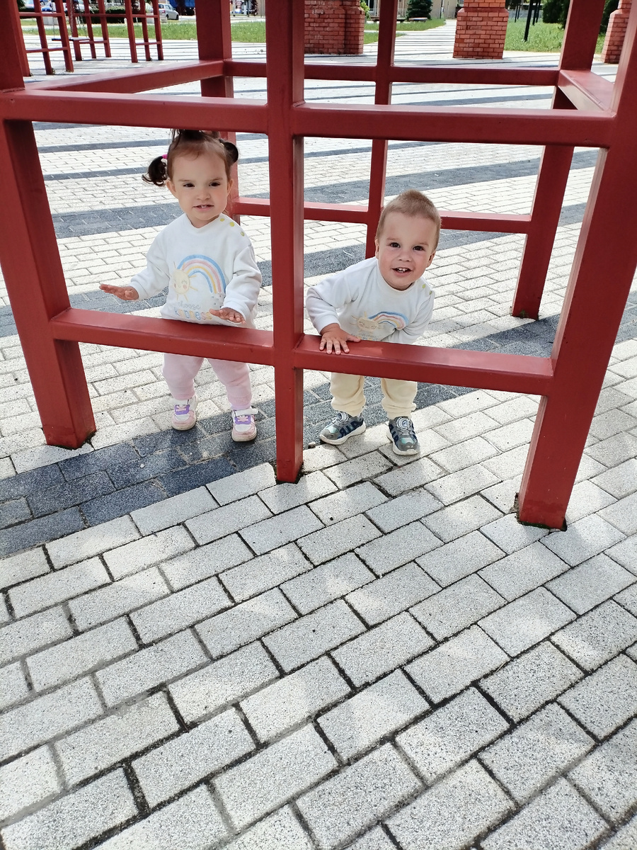 Ходили вчера в парк. Сева по всем лестницам стал лазить. Быстрее, выше, сильнее. А уж Амелия, как тайфун. Но самое страшное, она стала отказываться от страховки. Уберите руки, не держите ее. Ужас. Идёт над пропастью по тонкой перекладине, что тебе канатоходец, руки наши отталкивает, чтоб не помогали. Даже просто сзади нее не ставьте руки, она сама. Про лестницы вообще молчу. На них давно сама и одна.