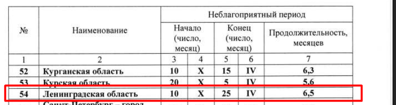 Например, в Санкт-Петербурге длится 6,5* месяцев (*Хотя как по мне тут 12 месяцев длится неблагоприятный период 😑😑😑) , значит к стоимости полевых работ добавляется 29%. Проще говоря, мы берем сумму затрат на полевые работы и умножаем на соответствующий процент [1].
