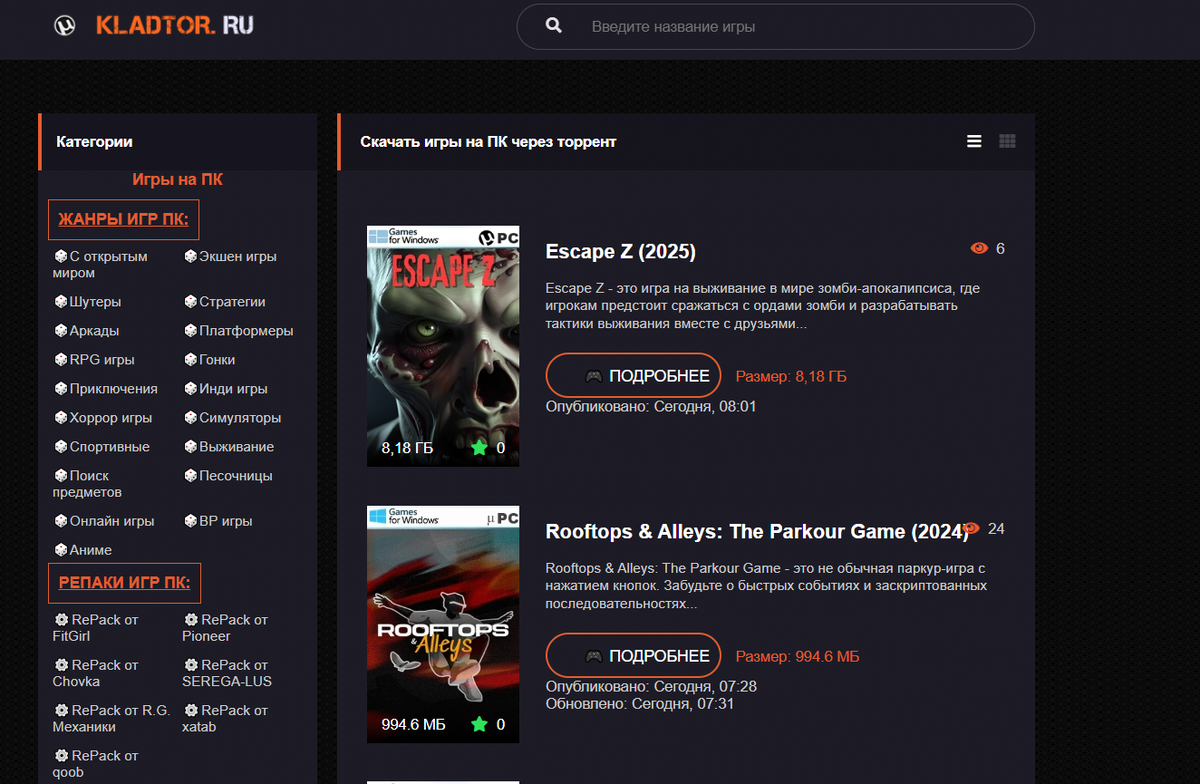КЛАДТОР – это кладезь игровых раритетов и современных хитов. От классических аркад, заставляющих вспомнить детство, до блокбастеров с ослепительной графикой – здесь найдется игра на любой вкус и кошелек (а точнее, его отсутствие). Сайт предлагает широкий выбор: RPG, стратегии, шутеры, симуляторы – все, что душе геймерской угодно.