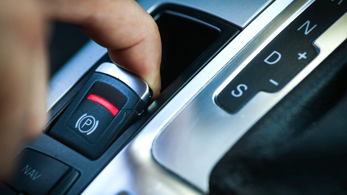 Это не тот олдскульный рычаг между сиденьями, который нужно было дёргать с силой кузнечика. Здесь — кнопка или “клавиша”, которую ты просто нажимаешь пальцем. И где-то в недрах авто моторчик поджимает колодки на задних колёсах.