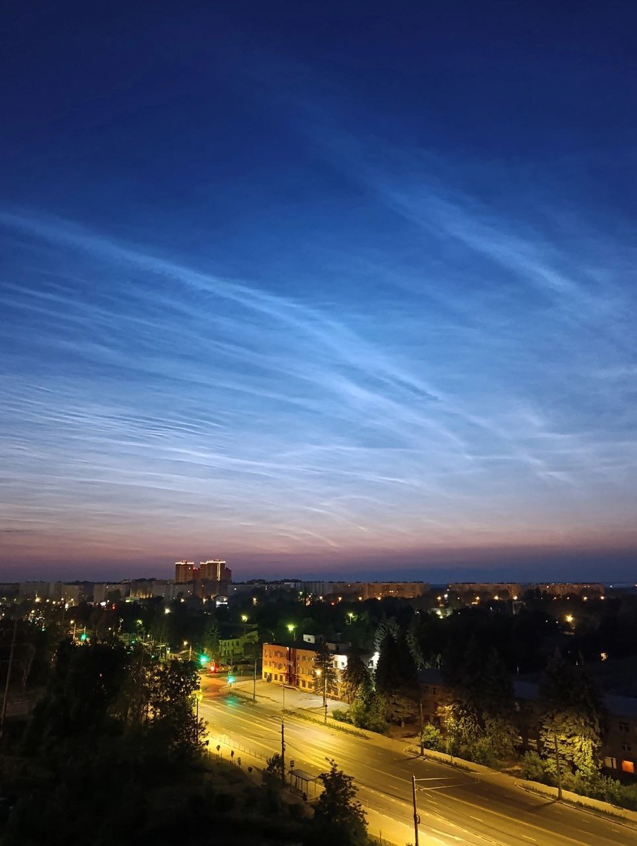 🌙 Почему ночью так светло? Облака такие на небе! В 2:00 над Рязанью вновь появились серебристые облака. К слову, природа их до конца не изучена – есть предположение, что они состоят из вулканической или метеорной пыли, а по данным спутника UARS – в основном из водяного льда.🔭 🆙 Это самые высокие облака на Земле – вы только представьте, они появляются на высоте 80-85 километров (к слову, граница космоса – официальная – 100 километров)! Для сравнения, обычные рождаются на высоте в 2-3 километра. Именно поэтому явление с красивым названием видно ночью – для них Солнце попросту не зашло. 🌥 А ещё серебристые облака – сравнительно молодое явление. Впервые о них сообщается в 1885 году, 🌋 вскоре после извержения вулкана Кракатау в Индонезии. С тех пор в разных точках планеты люди наблюдают на ночном небе серебристые полосы. Есть версии, что является причиной образования таких облаков? ☁️ 📸 Татьяна Рязанская #гуляка_интересное 🤩 Рязанский гуляка