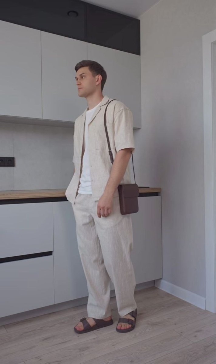 - Лен – Король: Его естественная фактура, способность пропускать воздух и впитывать влагу идеальны. Выбирайте льняные рубашки свободного кроя (не бесформенные!), брюки чинос или укороченные брюки (не шорты-бермуды!). Смиритесь с легкой помятостью – это часть эстетики.