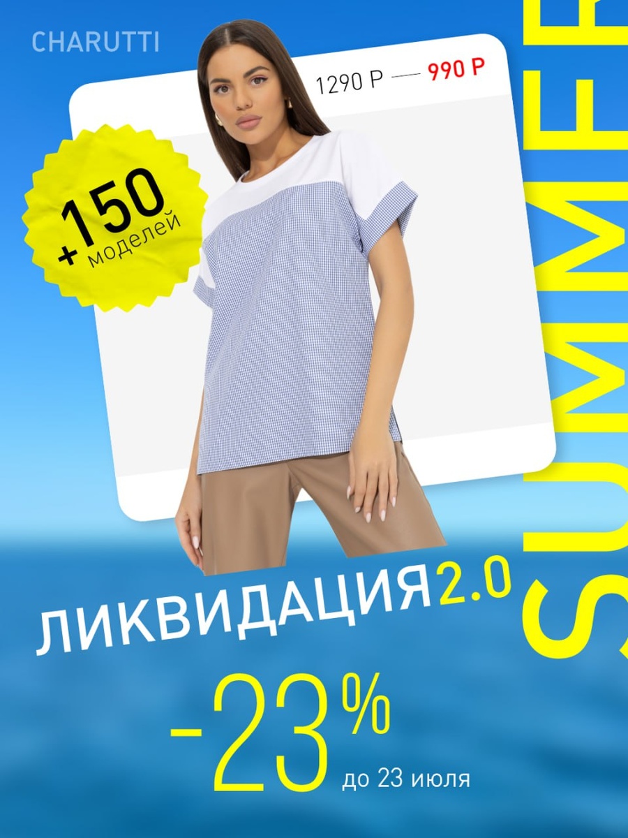 ☀️ ЛИКВИДАЦИЯ 2.0: жара началась! ☀️⛅️ ⛅️ Лето только разогревается, а мы уже включили максимальные скидки 🌊 Встречайте ЛИКВИДАЦИЮ 2.0 - больше 150 стильных моделей по жарким ценам.Платья, костюмы, блузы, брюки - любимые позиции теперь в разделе. Разбирают быстро, как холодную воду в +30 🌤 - успей выбрать, пока всё есть в наличии! Горячие скидки жгут ждут. Переходите и заказывайте! Акция действует при заказе и оплате до 23.07.2025 (23:59 НСК).