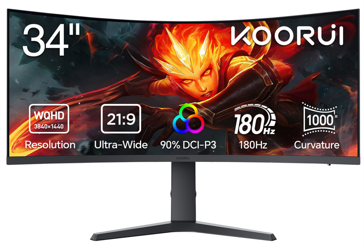 KOORUI 34E6UC — новый изогнутый монитор с WQHD-разрешением и частотой 180 Гц. Это устройство позиционируется как универсальное решение для тех, кто ценит производительность в играх и удобство при работе. Монитор вышел на международный рынок и уже доступен на Amazon по выгодной цене, особенно во время Prime Day 2025. Экран имеет разрешение WQHD (3440×1440) и изогнутость 1000R, что создаёт эффект полного окружения картинкой. Такая форма подходит не только для просмотра фильмов или погружения в игровые вселенные, но и для многозадачности: можно одновременно держать несколько окон, работать с графикой или играть без чёрных полос по краям. Частота обновления составляет 180 Гц, а время отклика — всего 1 мс MPRT, что делает его отличным выбором для динамичных шутеров и гоночных симуляторов. Для снижения размытости движения используется технология HDR400, улучшающая контрастность, цветопередачу и яркость. Цветовой охват включает 90% DCI-P3 и 125% sRGB, что делает монитор подходящим для дизайне