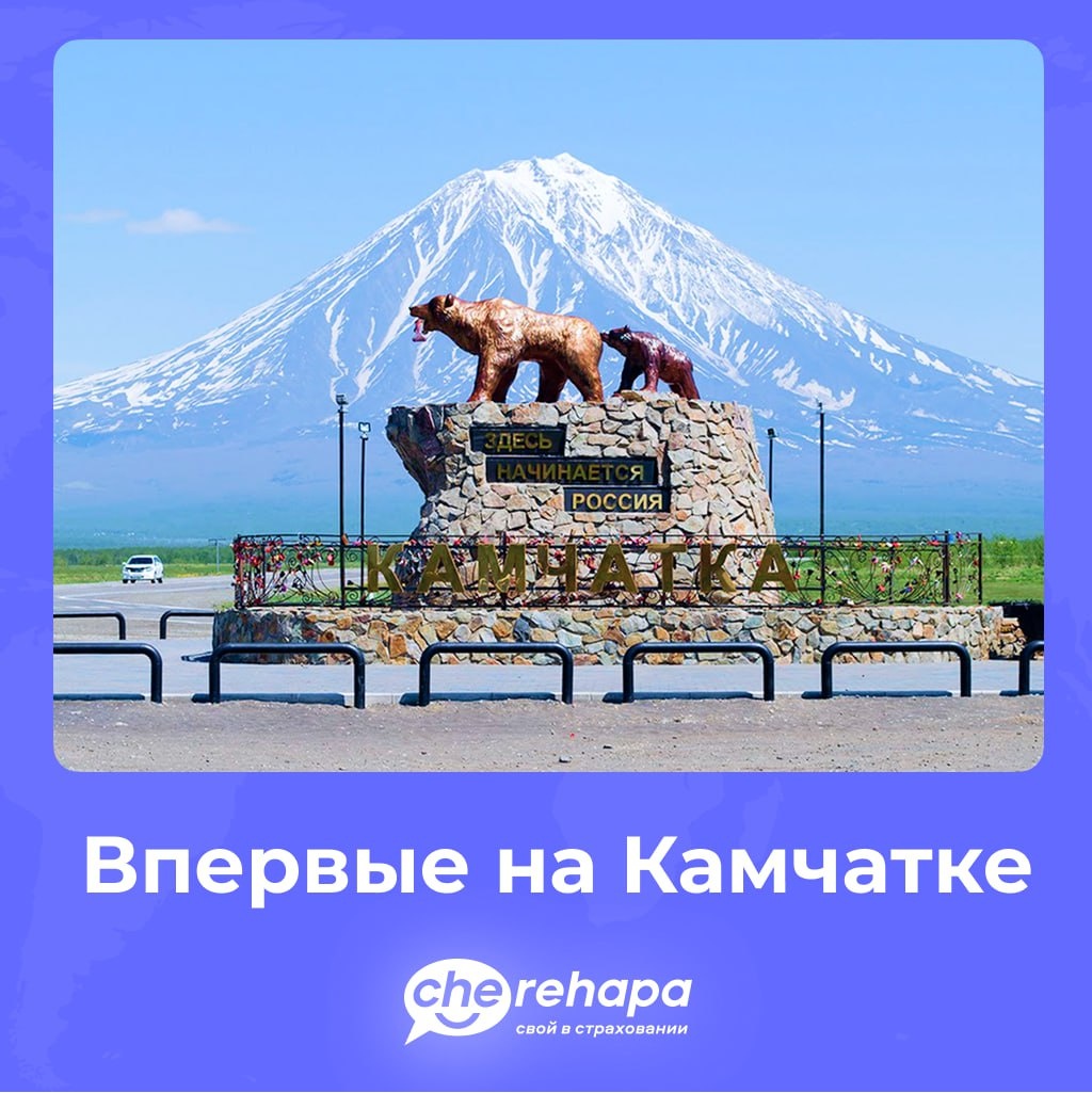 «Здесь начинается Россия» 🐻🇷🇺 Памятник с такой надписью можно увидеть по пути из аэропорта Елизово в Петропавловск-Камчатский. Это первая достопримечательность, которая встречает туристов, прилетающих на Камчатку. В ясную погоду позади медведей видны вулканы Корякский, Авачинский и Козельский — ещё один символ края. Что ещё стоит посмотреть на Камчатке и как безопасно это сделать, рассказали в блоге → cherehapa.ru/blog/aktivnyj-otdyh/kamchatka-perviy-raz