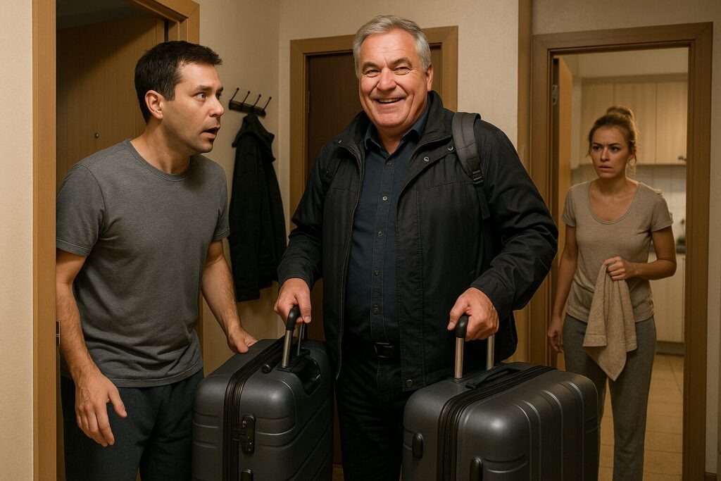 Максим открыл дверь и замер. На пороге стоял его отец с двумя огромными чемоданами и рюкзаком за спиной.