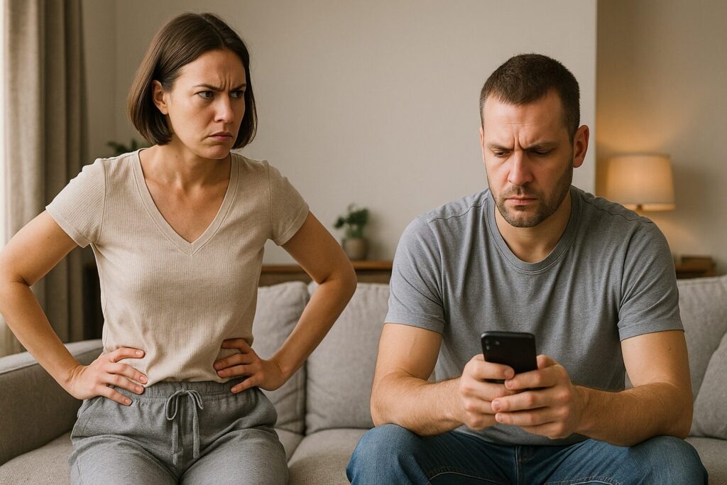 Муж переключил канал, делая вид, что полностью поглощен происходящим на экране.