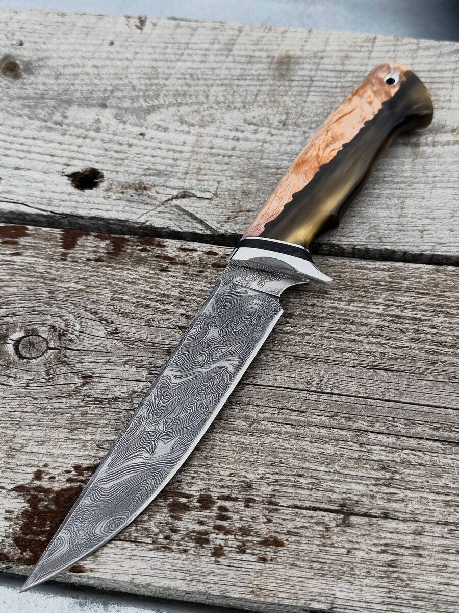 Готов универсальный нож «Байкал» из дамасской стали в 950 слоев.