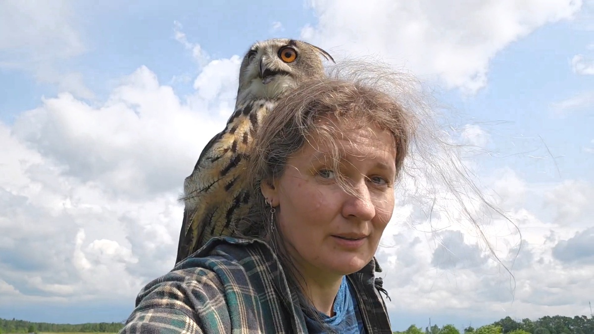 Сова филин Ёль выезжает из люпинового поля на Чуме Болотной, - не каждый может себе такое позволить