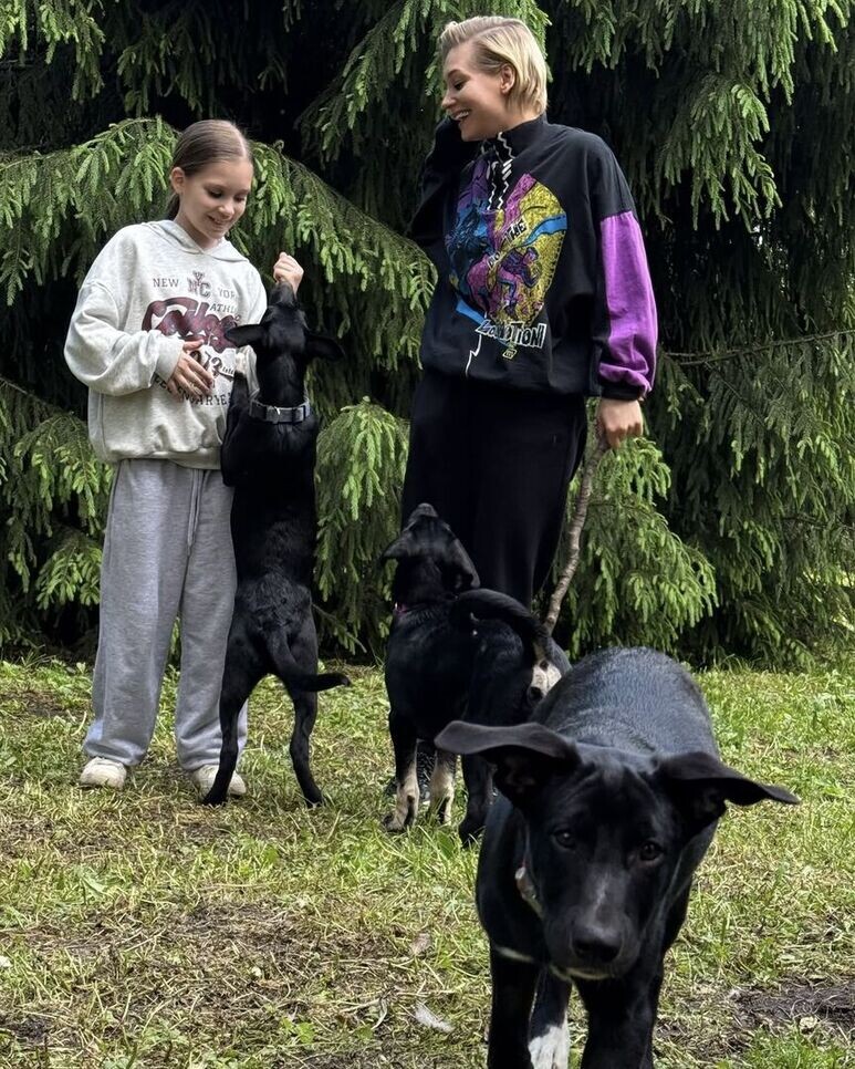 «Мы с дочкой давно хотели взять собаку из приюта и видели много постов с псами, но именно от этих фотографий меня расщепило на тысячи атомов. Уже через 3 часа мы тискали трех фантастических пацанов! Пылких и ласковых», — рассказала актриса.