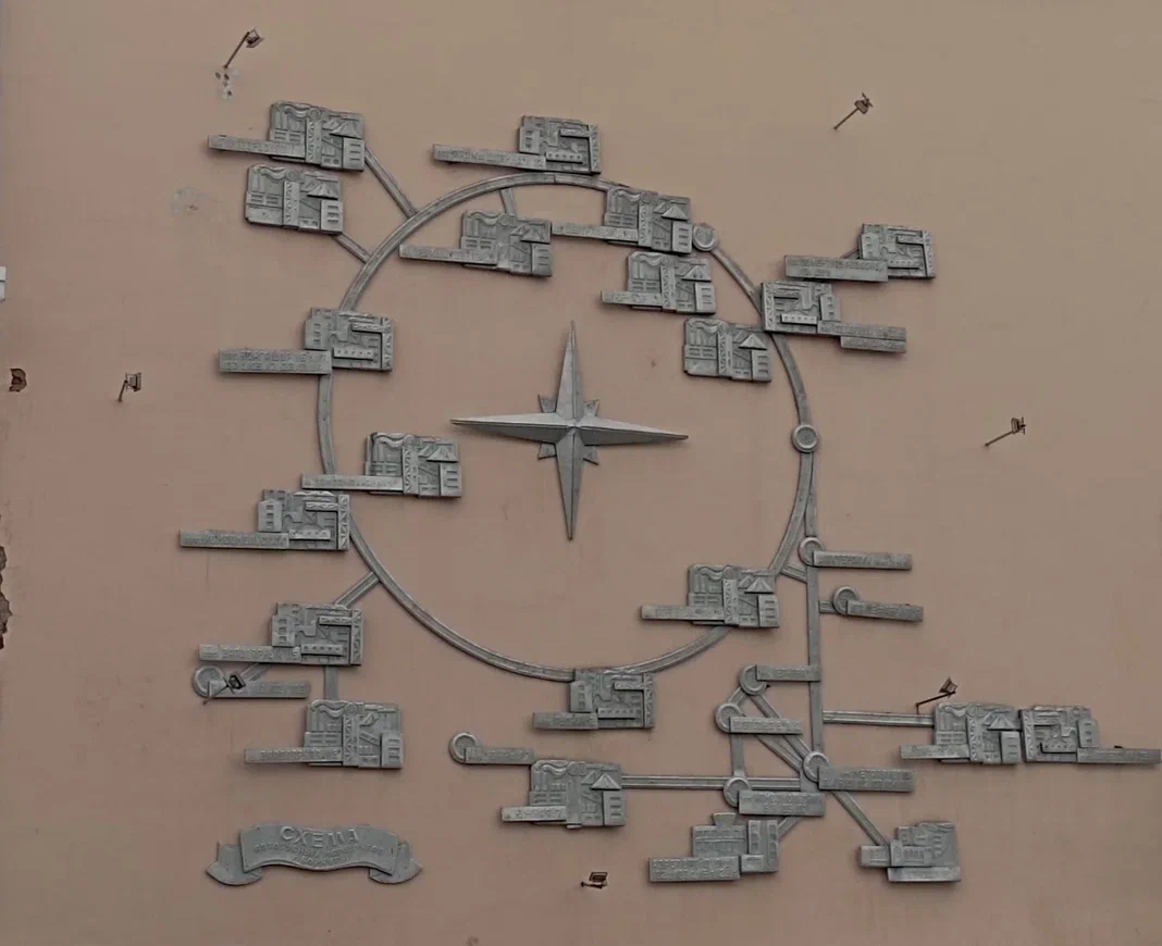 Люди всегда старались украсить свои дома не только внутри, но и снаружи. Жители Воркуты в этом отношении не исключение. Панно на стене ТЦ "Каскад" (бывшего когда-то кинотеатром "Родина") изображает воркутинское Кольцо с шахтами и посёлками в период расцвета. А вот лепнина на здании старой "Родины", построенной в 50-е. 25 июня 2025 г. здание снесли. Дом на улице Московской: Другой неподалёку: Воркутинский телецентр: Бассейн "Дельфин" украшают изображения спортивных наград и эмблемы спортивных обществ. Очень люблю мозаику! Она позволяет создавать яркие, праздничные картины, способные противостоять холодному и влажному климату. Вот памятник на пересечении улиц Мира и Ленинградской: Это панно на улице Димитрова я долго искала. Думала даже, что оно находится не в Воркуте. Далёкие времена советско-болгарской дружбы... Может быть, сегодня многие и не знают, но в Коми АССР было построено три посёлка, в которых жили болгарские лесорубы. А в наших магазинах продавались вкусные соки и лечо болга