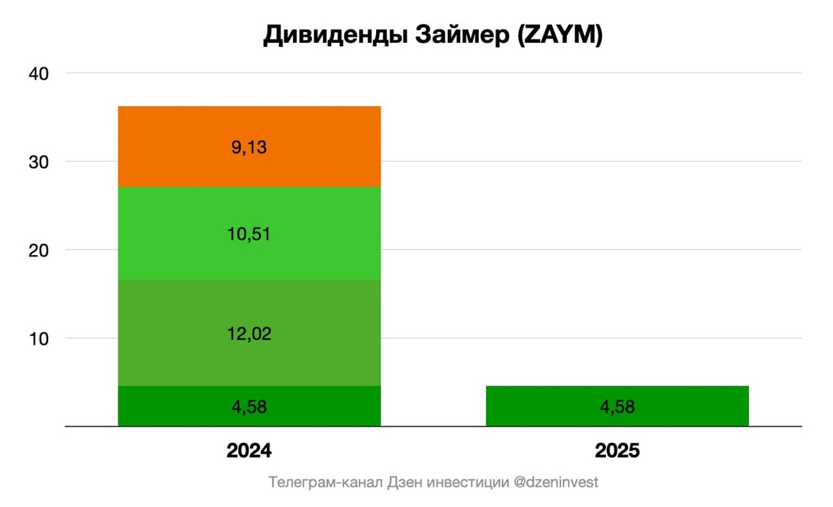 Акционеры "Займера" одобрили дивиденды за четвертый квартал 2024 года в размере 9,13 рубля на акцию Дивидендная доходность ≈ 5,95% Отсечка 28 июня 2025 года