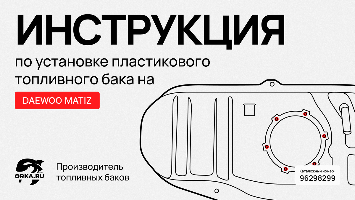 «Все права защищены, копирование без разрешения правообладателя запрещено» Сегодня у нас в в гостях — Daewoo Matiz. Матиз давно зарекомендовал себя как верного и юркого городского бойца, а расходу топлива можно только позавидовать 😎 Но возраст дает о себе знать, и одна из болячек данного авто — это ржавчина и течь топливных баков. Мы решили вопрос радикально — заменили старый металлический бак на новый усиленный пластиковый. Надёжность, антикоррозийная защита, усиленный (толщина стенки в 1 см) — теперь можно не переживать за целостность даже на суровых дорогах и абсолютно забыть о проблеме коррозии металла 😎 🛠 Ниже подробная инструкция по установке топливного бака на Дэу Матиз Отсоедините клеммы аккумулятора с помощью ключа на 10 Открутите крышку заливной горловины для снижения давления в топливном баке Откиньте сиденье и снимите крышку доступа к топливному баку Отсоедините быстросъемы подачи и возврата топлива от погружного модуля, разъем проводов, патрубок линии адсорбера с самоз