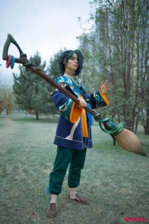 «Я всё чаще и чаще прошу косплееров думать не только над цветом материалов, но и над фактурой. Есть фактуры, которые в сценическом свете работают просто потрясающе. Взять эти пайетки, стразы – этот блеск. Если это допустимо в образе персонажа, почему бы не насыпать побольше? Также дополнительно уделяю большое внимание выкраске тканей – дополнительный слой сверху, поддувка, задувка аэрографом. Когда мы в каких-то местах можем сделать цвет глубже, а в каких-то местах вывести ярче. И как раз тогда происходит магия воплощения персонажа из двухмерного мира – в наш, трёхмерный. Именно за счёт усиления и добавления художественных эффектов в костюм», – рассказывает о своём увлечении Гаталия.