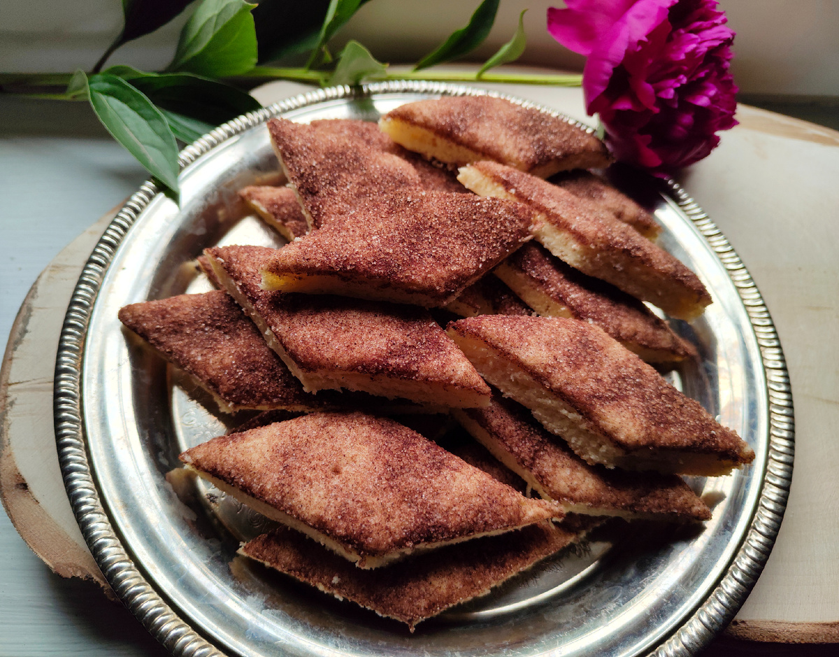 Очень простое и вкусное печенье с хрустящей и ароматной сахарно-коричной корочкой: - сливочное масло 130 г - яйцо крупное 1 шт. - сахар 120 г в тесто и ещё 2 ст.ложки на посыпку - корица молотая 1 ст.ложка - соль на кончике ножа - сметана 40 г (1 ст.ложка с горкой) - мука 280 г - разрыхлитель 6 г ☝️Если не любите корицу, можно сделать печенье просто с сахарной посыпкой, но в этом случае лучше использовать коричневый тростниковый сахар - результат будет интереснее. В подтопленное сливочное масло добавляем сахар и соль. Взбиваем венчиком или миксером (мне миксером удобнее): Добавляем яйцо и сметану: Снова взбиваем. Всыпаем 100 г муки и разрыхлитель: Взбиваем до однородности. Получается пышная кремообразная масса: Всыпаем ещё 180 г муки и замешиваем тесто. ☝️Может показаться, что муки маловато, но не спешите её добавлять - в процессе замеса тесто становится плотнее, и его легко можно собрать в один ком: Прикрываем тесто и ставим в холодильник на 20 минут⏳ Тем временем, можно подг