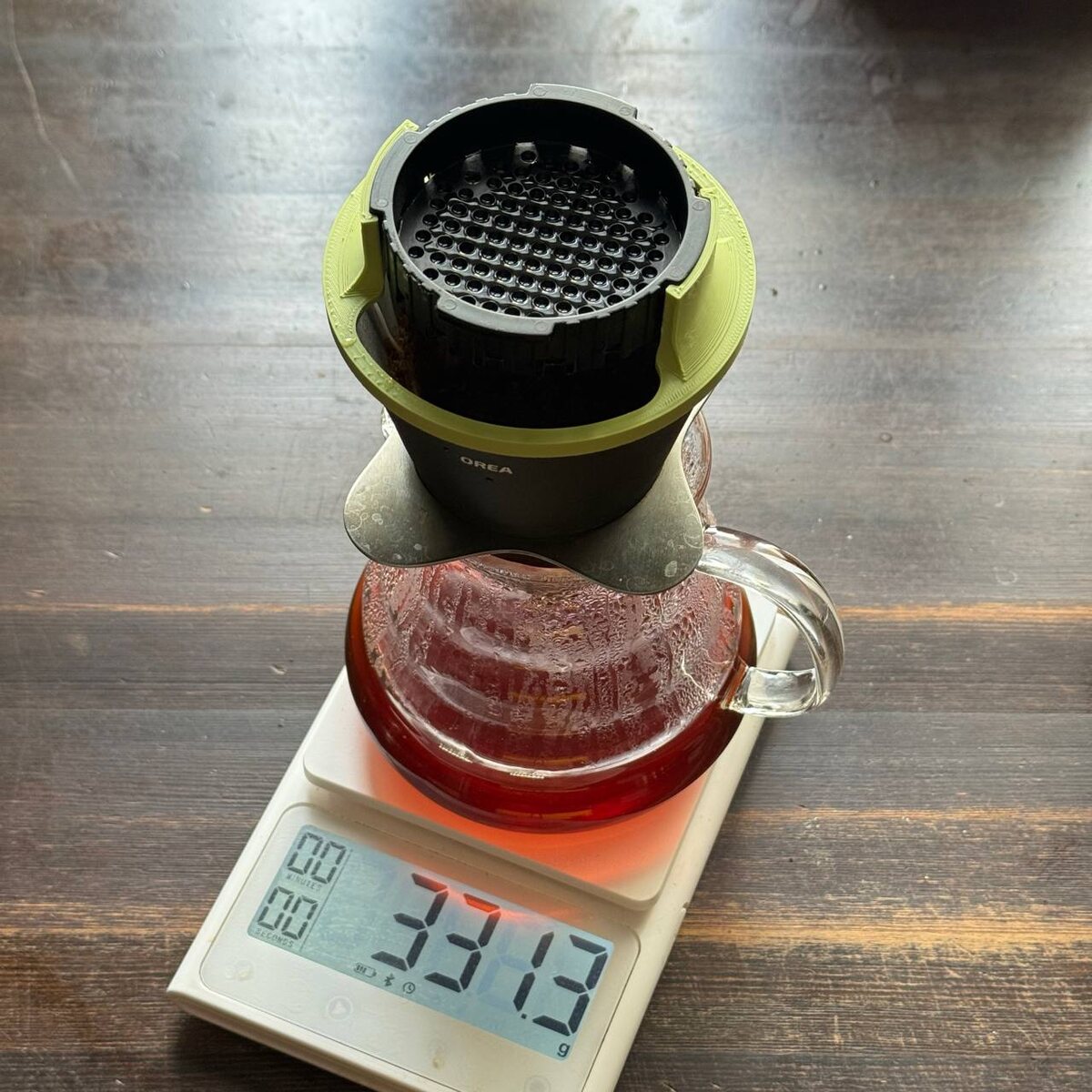 Напечатал такую вот ерунду, чтобы использовать кусок аэропресса в качестве мелодрипа. Это позволит разбить поток воды из чайника не несколько струек и снизить перемешивание кофейной гущи при вливании.