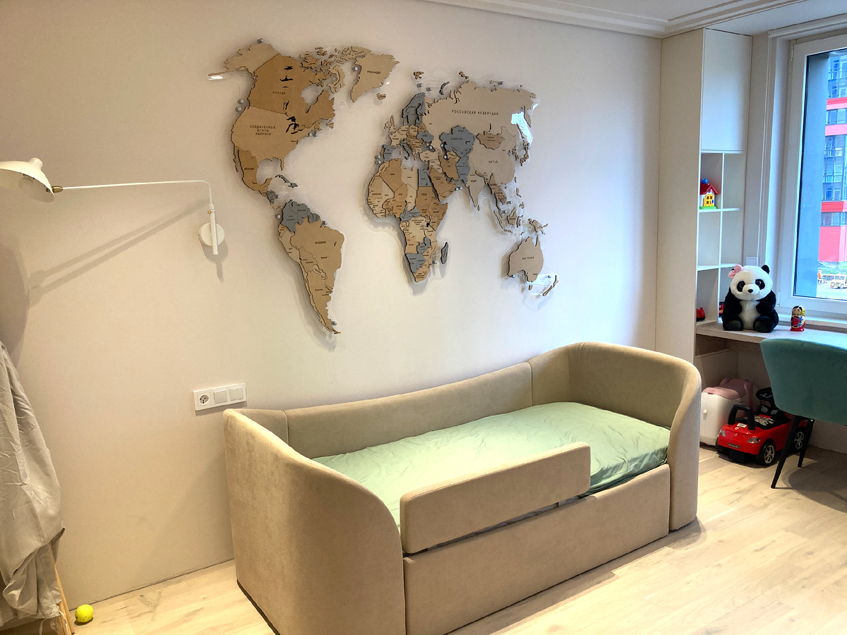Детская комната — это не просто место для сна и игр, а целый мир, в котором ребёнок растёт, развивается и учится. Именно поэтому так важно наполнить его пространством, которое будет вдохновлять, обучать и радовать глаз. Одним из стильных и полезных элементов декора является карта мира на стену, выполненная из дерева. Преображение интерьера с помощью деревянной карты Деревянная карта мира на стену — это не просто декор. Это настоящее произведение искусства, созданное из натуральных материалов. Такие карты: