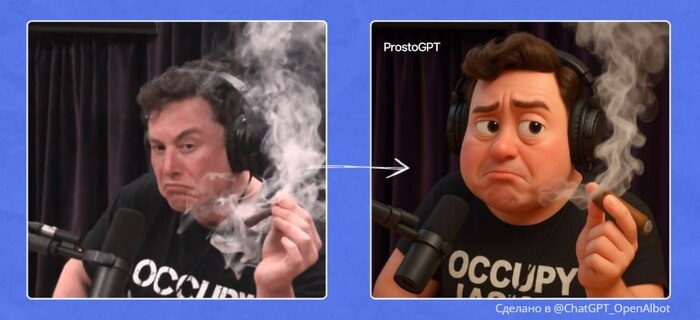 Мы, в редакции телеграм-канала Костыль, собрали самые свежие и проверенные промпты для стилизации Ваших фото. Главная AI компания в мире недавно открыла API доступ к своей топовой модели для генерации и стилизации картинок — GPT Image. Мы сразу ринулись ее проверять и настраивать. Инструмент сохранит часы дизайнерам и деньги для их заказчиков) Если вы кто-то из вышеперечисленных или просто хотите побаловаться, удивить своих близких, то эта статья для Вас. Мы протестировали данную модель как в оригинальном GPT, так и в Телеграм боте @ChatGPT_OpenAlbot по API и собрали наиболее качественные промпты с общим выводом в конце статьи😉 *Все промпты можно вводить как на английском, так и на русском языке: 1) Стиль Pixar Превратите этого человека в 3D-анимационного персонажа в стиле Pixar. Используйте мягкие, округлые черты лица, выразительные мультяшные глаза и гладкие текстуры. Конечный результат должен напоминать персонажа из фильма Pixar - очаровательного и доброго 2) Стиль Аниме (Гибли) Пр