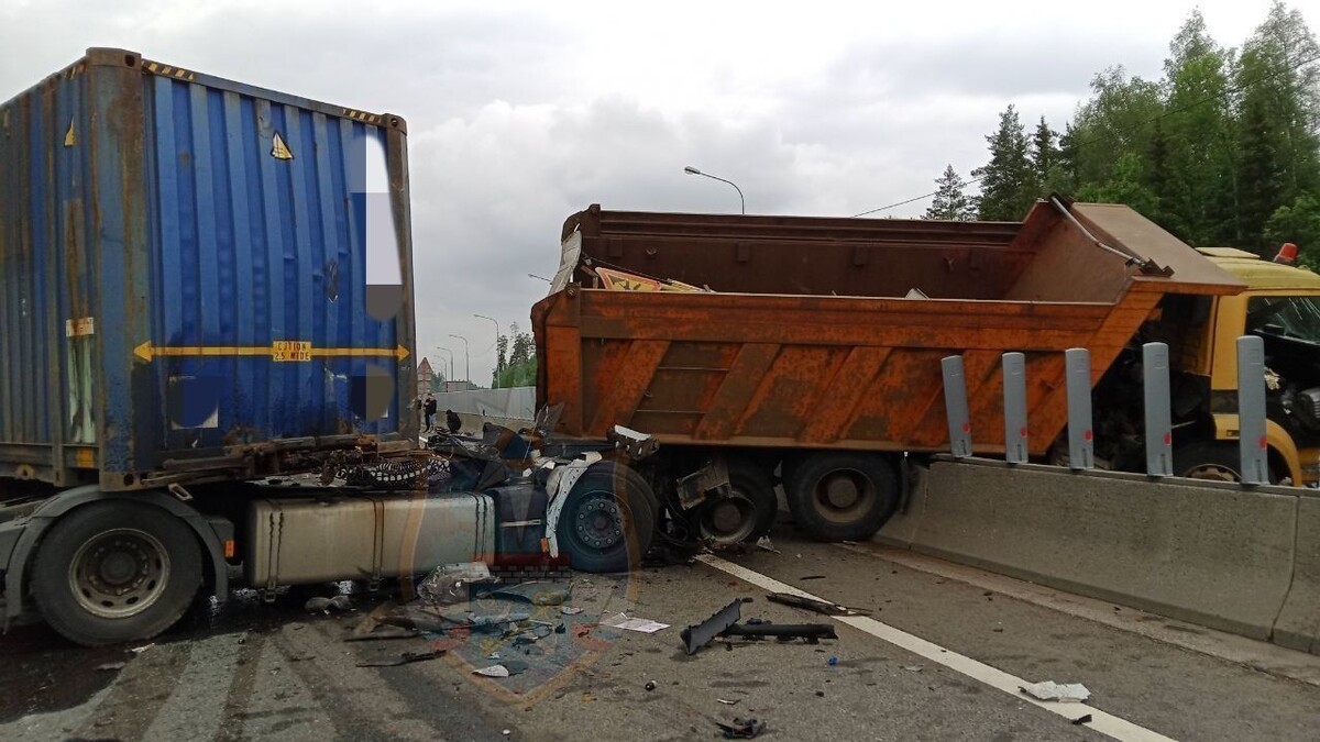 Сегодня днем в Тосненском районе Ленинградской области произошло смертельное ДТП с участием двух грузовиков.
